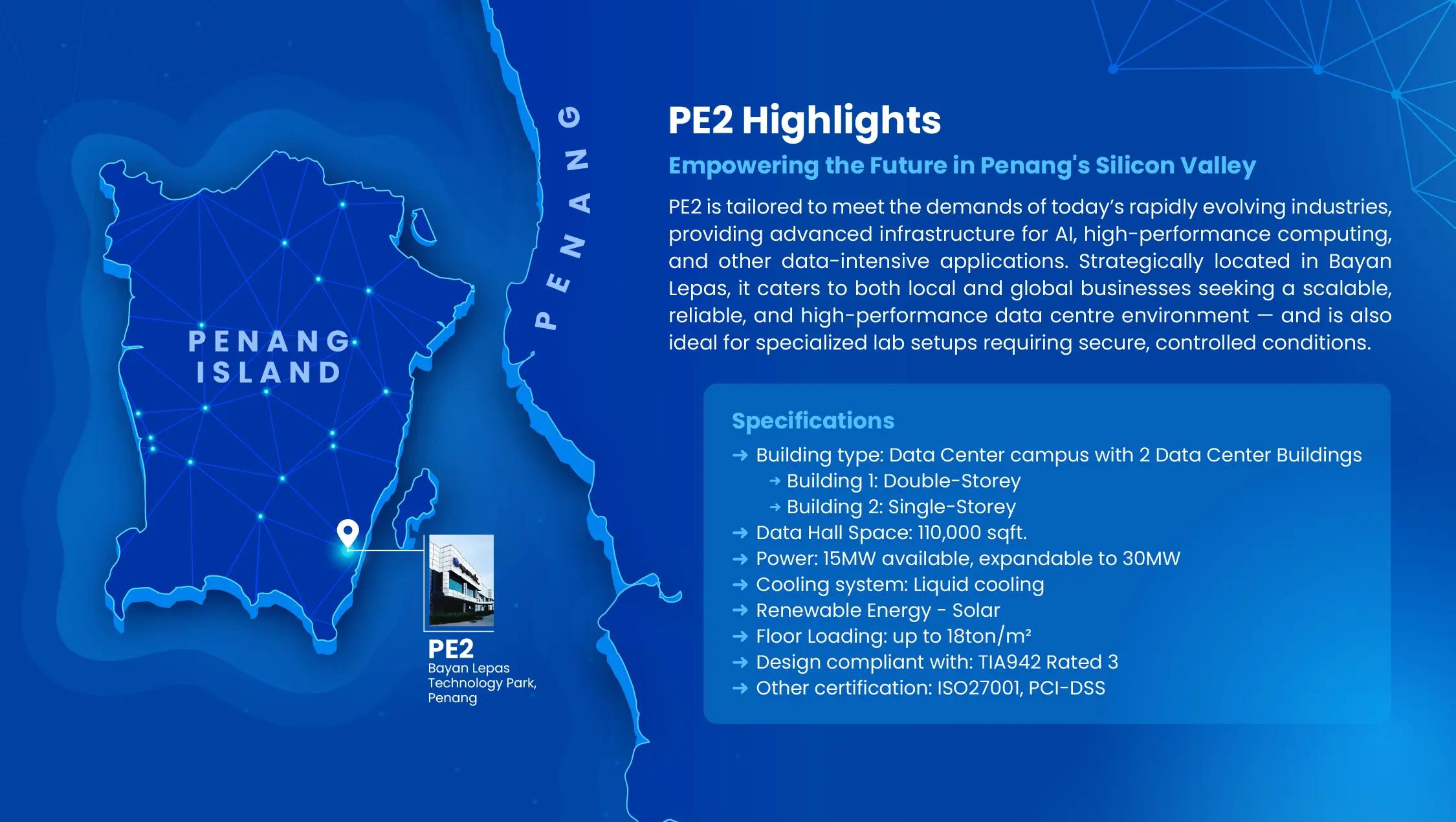 PE2 isn’t just a data centre, it’s a launchpad for the next wave of AI, fintech, digital content, and hyperscale innovation in Northern Malaysia. Whether you’re a cloud provider, ISP, or digital platform—this is your gateway.